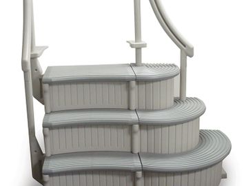 The curved steps and sweeping hand rails of the Confer above ground pool step system creates an attractive setting while adding safety to your pool. The in-pool step set offers plenty of room for all swimmers to easily and safety enter and exit the pool.